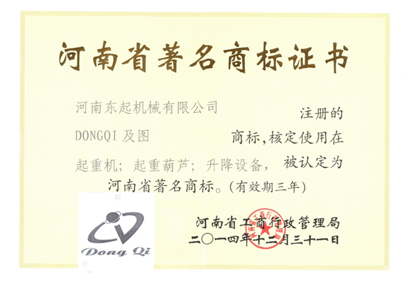 熱烈祝賀河南東起機械有限公司獲得河南省**商標(biāo)!